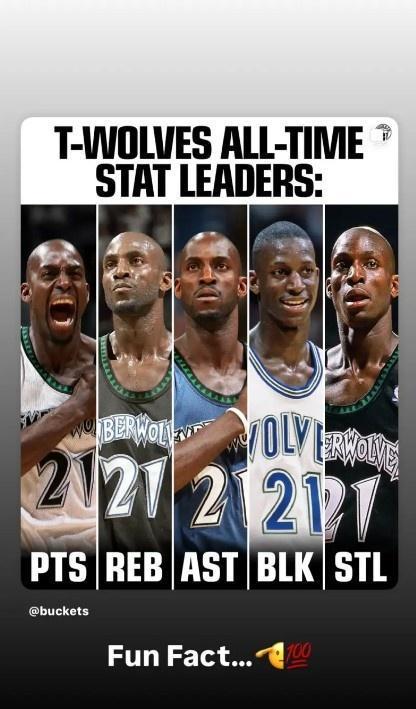 全是本人!加内特社媒晒照:自己有五项数据为森林狼队史榜首