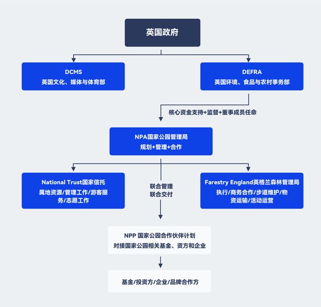 相比之下,DEFRA才是国家公园体系和自然空间治理的实际主管部门。英国国家公园管理局(National Park Authority, NPA )的组织运行经费、基础治理能力以及大量自然修复项目资金,均来源于DEFRA的财政体系。