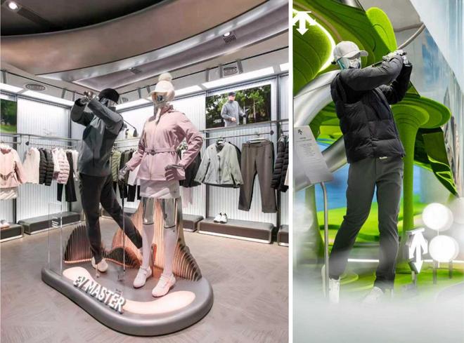光芒循着建筑内在的莫比乌斯环轨迹缓缓蔓延,依次点亮高尔夫、BLANC、全品类专精及儿童四大主题空间,旗舰店的幕布同步徐徐开启,"未来之城"以完整姿态亮相。这座精心打造的空间巧妙融合冰雪文化构想、创新零售陈列方式与未来科技元素,从主题分区的功能规划到沉浸式场景的营造,每一处细节都凝聚着品牌对专业运动体验的创新探索。