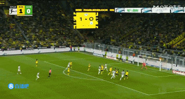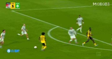 多特领先!阿德耶米世界波+联赛首球!第20分钟,梅勒后场传球失误被断,莱尔森右路横传,阿德耶米禁区弧顶重炮轰门直钻网窝,多特蒙德1-0沃尔夫斯堡!↓