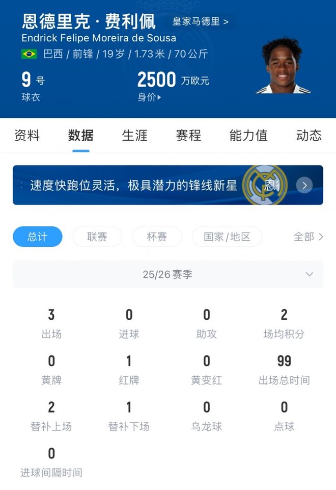 但数据是不会骗人的。 本赛季至今,恩德里克在有限的出场时间里,虽然有过欧冠处子秀破门的惊艳,但在西甲赛场的对抗中,他显得有些“水土不服”。在安切洛蒂的战术板里,姆巴佩是正印中锋,维尼修斯和罗德里戈占据两翼,后面还排着个居莱尔。