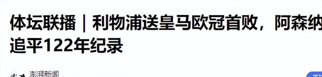 澎湃新闻(体坛联播|利物浦送皇马欧冠首败,阿森纳追平122年纪录2025.11.05)