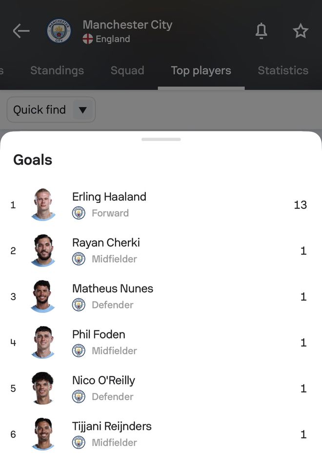 下半场尼科·奥赖利打进了一粒巧妙的进球,让大比分有了必要的优势,而奥赖利本赛季的第一个英超联赛进球,这同时也意味着曼城队目前的第二射手——比哈兰德少进11个球——仍然是马克西姆·埃斯特夫(伯恩利中卫)的乌龙球。