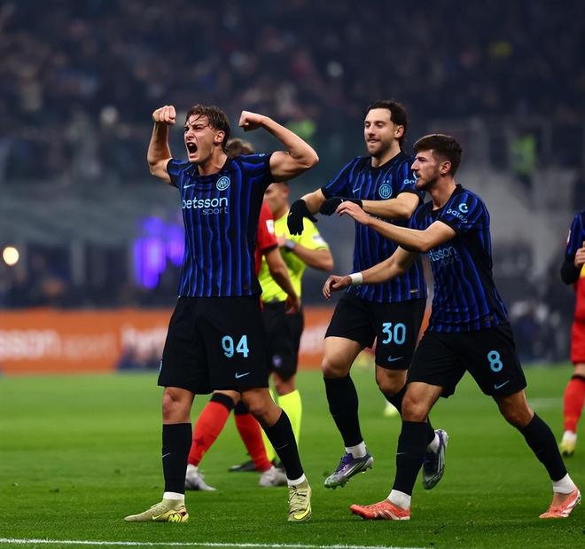 下半场51分钟,弗拉泰西再送助攻,小图拉姆奋不顾身鱼跃冲顶完成梅开二度;在被威尼斯追回一球后,第75分钟,还是比塞克的长传,姆希塔良摆渡回中路,博尼迎球外脚背爆射直挂死角也打进世界波,国米5:1大胜拿到了意大利杯8强的入场券。